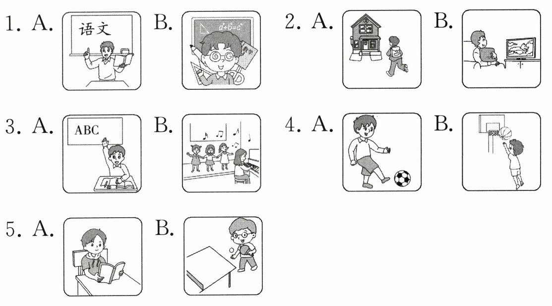 一、听录音,圈出与所听内容相符的图片。(听两遍)(5分)