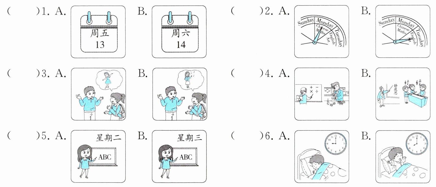)3. A. It's six thirty. B. Time for walk. C. On Monday and Thursday.(