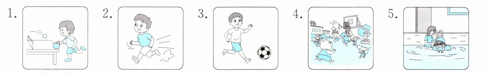 E. —It's ten o'clock. Time for PE. Let's play ping-pong together. —Good idea!