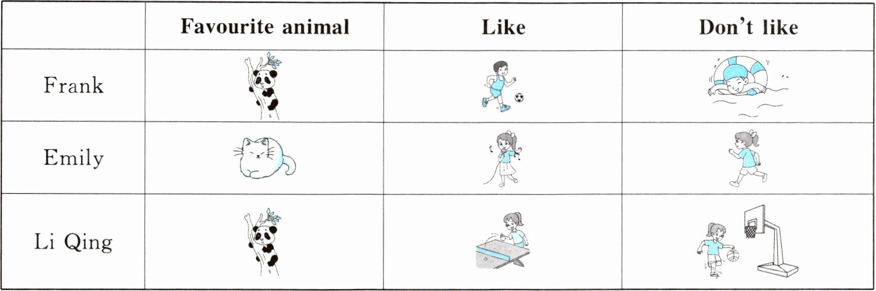 cats;pandas;playing football;swimming; like running;playing ping-pong;like playing basketball