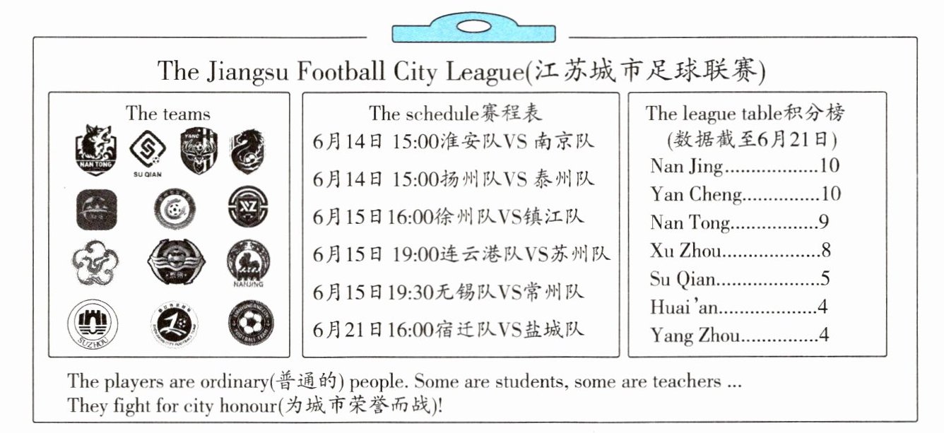 The players are ordinary(普通的) people. Some are students, some are teachers ... They fight for city honour(为城市荣誉而战)!