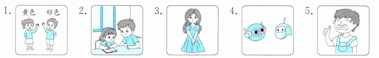 1. tall 2. can 3. small 4. boy 5. black