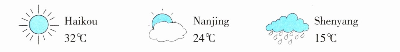 (一)杨玲搜集到一些地区的天气信息,根据图片和首字母补全表格。