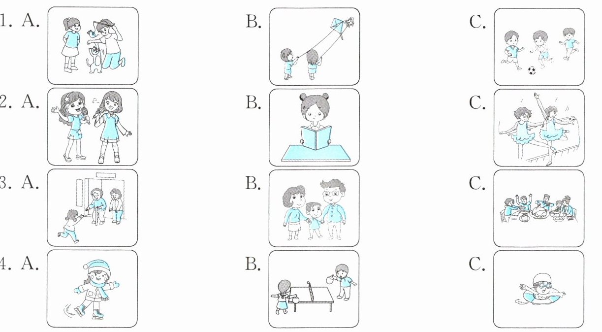 一 听录音,选出与所听内容相符的图片。(听两遍)