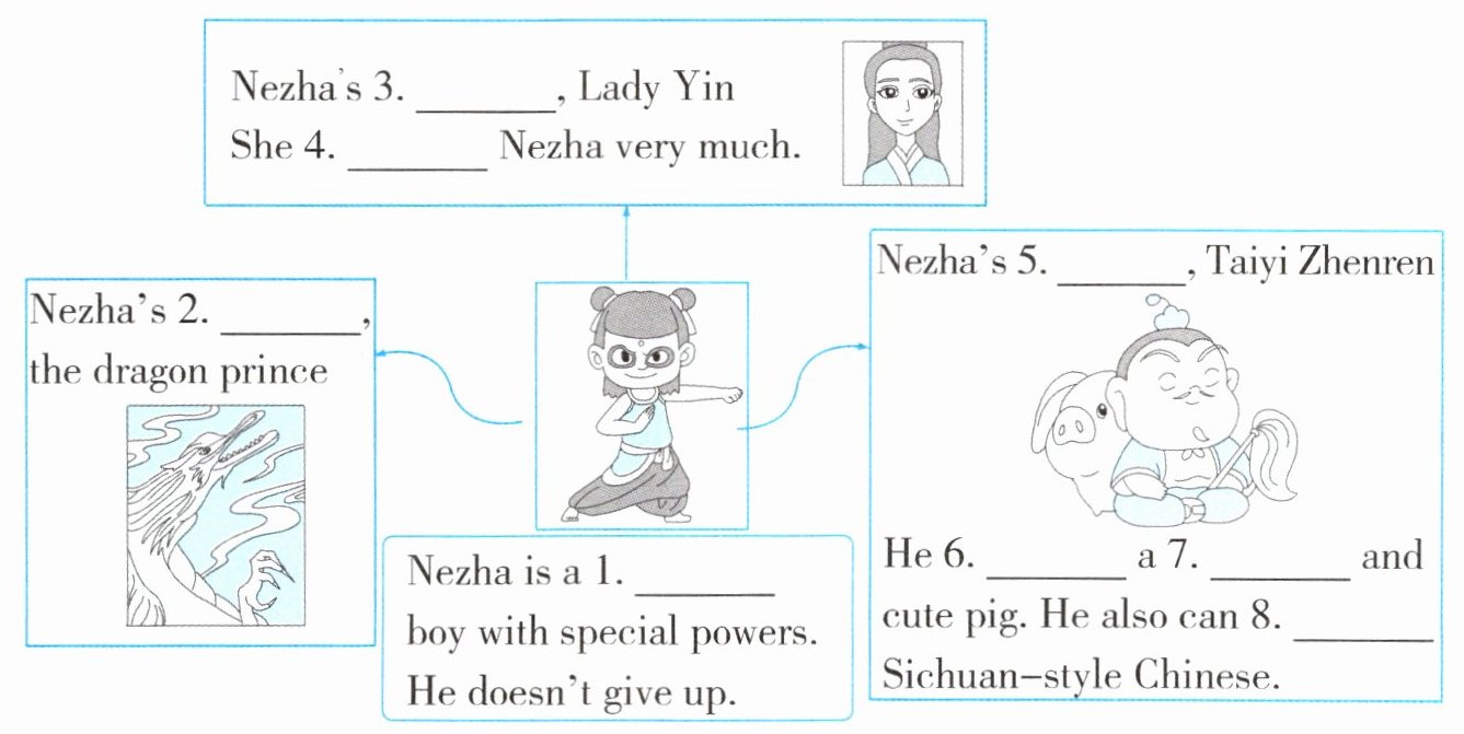 In just nine days after its release(上映) during the exciting 2025 Spring Festival,the film Nezha 2 clinched the top spot in China's box-office history(夺得了中国票房史上的冠军). Nezha is a brave boy in this popular Chinese film. In the story,Nezha is born with special powers(特殊能力),but some people call him a "devil(魔)". He doesn't give up and fights to prove(证明) that he can be a hero. Nezha's best friend is Ao Bing,the dragon prince. They face challenges(面对挑战) and protect their own families together. Nezha's mother,Lady Yin,always supports him. She says,"I don't care if you're a devil or not. You are my son,and I love you!" The film is full of fun and magic. Nezha's teacher,Taiyi Zhenren,rides a fat and cute pig and speaks funny Sichuan-style Chinese. Nezha 2 teaches us to believe in ourselves. Nezha shouts,"My life is mine to decide!" He shows that being different is not bad. With courage(勇气) and love,anyone can be a hero.