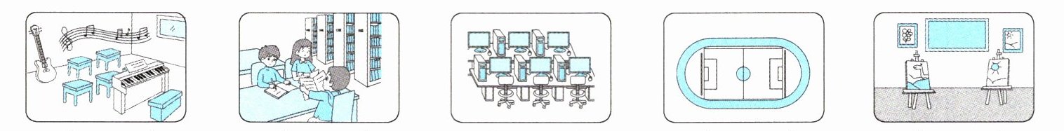 A. library B. playground C. art room D. classroom E. music room F. computer room
