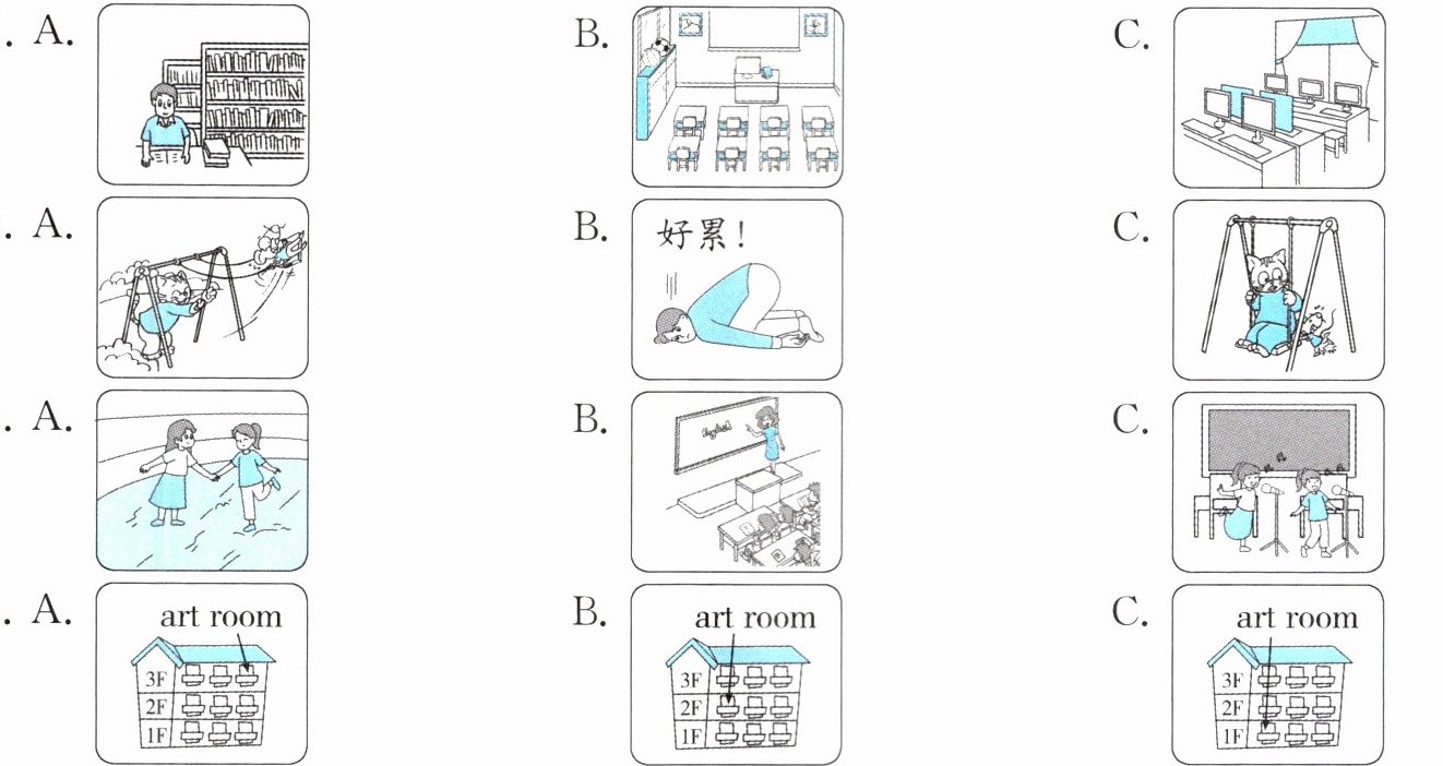 ( )5. A. The music room. B. The science room. C. The art room.