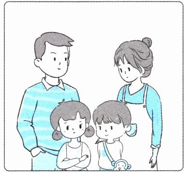 Hello, I'm Lindsey. Look! This is my f______ photo. The tall man is my father. My mother is b______ him. She's beautiful. My brother and I stand in f______ of them.