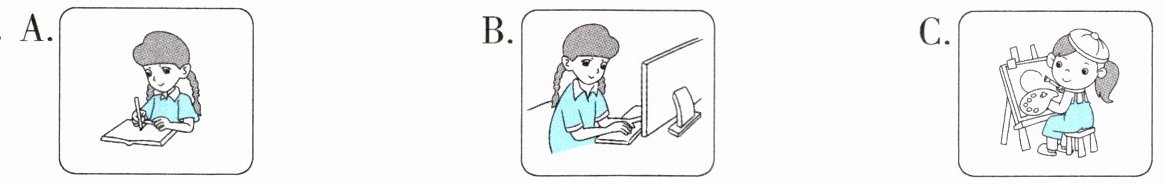 ( )5. A. She is dancing. B. She likes dancing. C. She plays the piano.