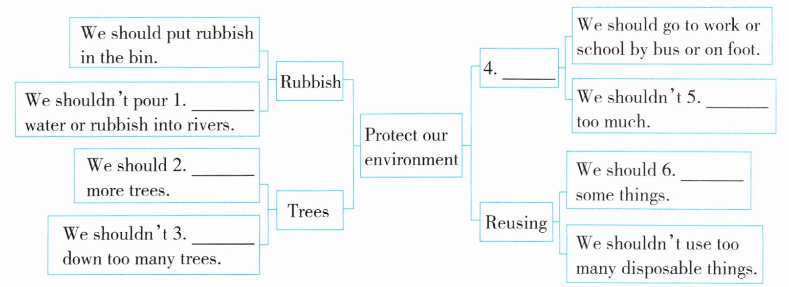 1. dirty 2. plant 3. cut 4. Energy 5. drive 6. reuse