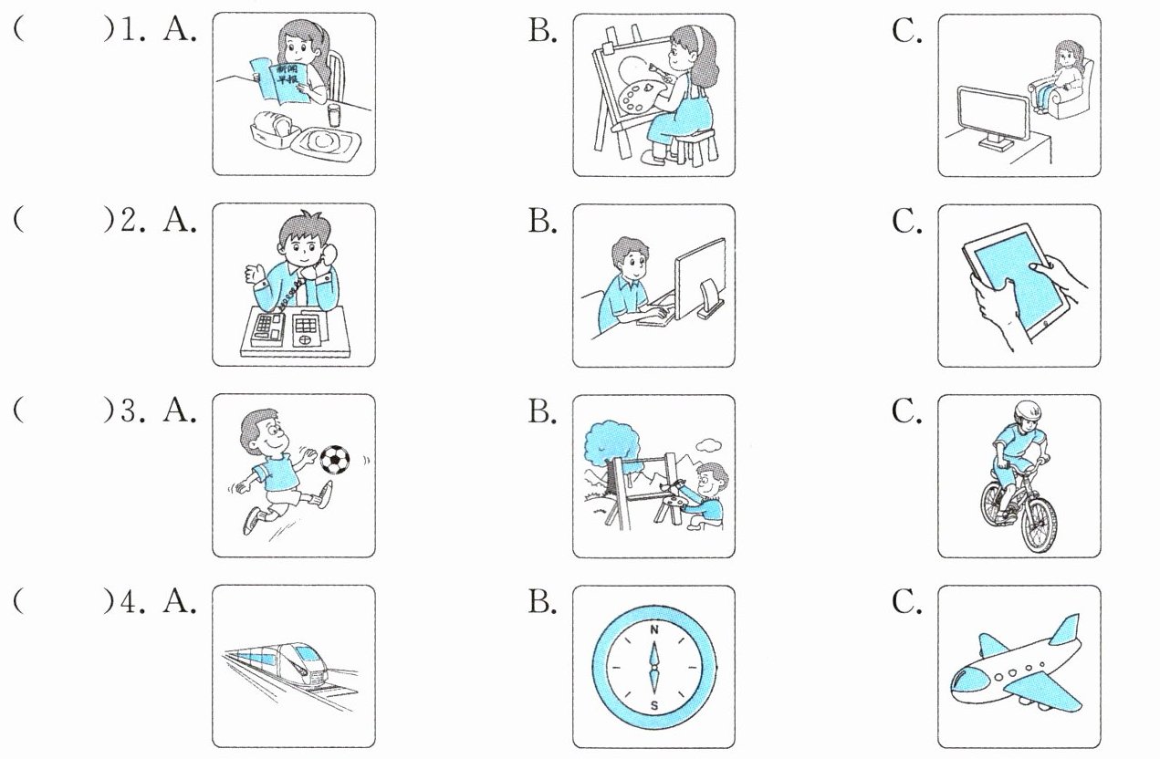 )4. A. He can listen to music. B. He can play computer games. C. He can draw pictures.