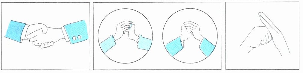 When people meet,men usually use their left hand to hold the right one. It's believed that people considered the left as the important side for men in Chinese history. While for women,the important side is the right. So when they give the fist and palm salute,they should put their right hand on the top. When someone presents the fist and palm salute to you,you are supposed to do it back as well.