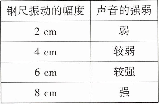 3. 小科用钢尺做“探究钢尺音量变化”的实验,把钢尺一端紧按在桌面上,另一端伸出桌面大约20 cm。保持钢尺伸出桌面长度不变,用不同的力拨动钢尺。