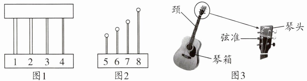 (2)图2研究弦的长度对音高的影响,实验中改变的是______,用相同的力拨动四根弦,弦5发出的声音______(填“最高”或“最低”)。