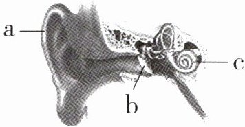 7. 科科吹哨子时,果果立即听到了刺耳的哨声。如图耳朵的结构中,负责收集声音的是( )。