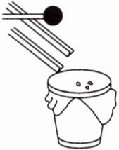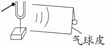 11. 我们将气球皮绷紧扎在一个圆筒上,将圆筒如图所示放在音叉右侧,并在上面挂上一个泡沫小球,观察小球的运动。这个现象模拟的是( )。