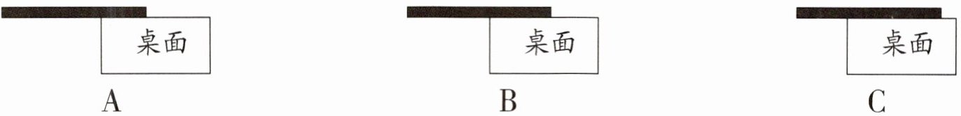 14. 小科用一只手在桌面上压住钢尺的右端,另一只手用大小相同的力拨动钢尺的左端,下列钢尺中振动最快的是( )。