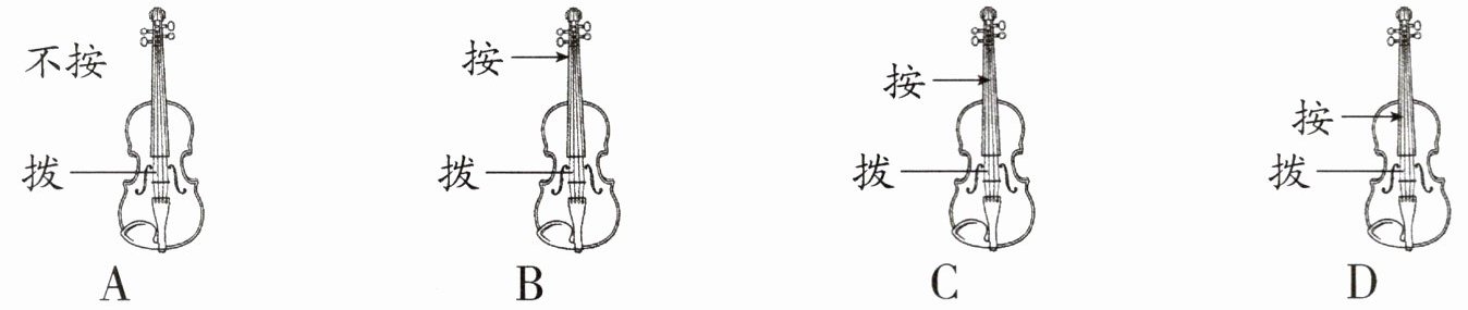 16. 一只手轻轻拨动同一根弦,另一只手不按或按在不同的位置,琴弦发出声音的高低不同,其中发出声音最低的是( )。