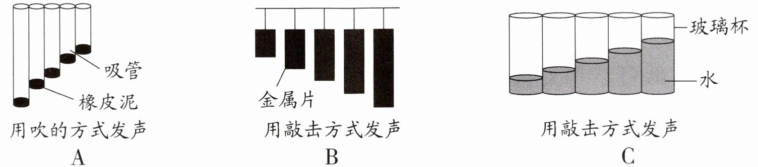18. 以下是明明制作的小乐器,依次从左到右让它发出声音,能发出“1(do)2(re)3(mi)4(fa)5(sol)”5种不同声音的是( )。