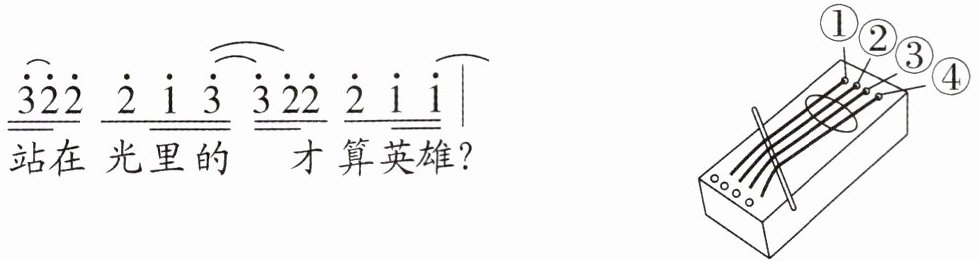 17. 莲莲在弹奏下图曲谱中的“i”这个音时,该拨下图所示哪个位置上的橡皮筋?( )。