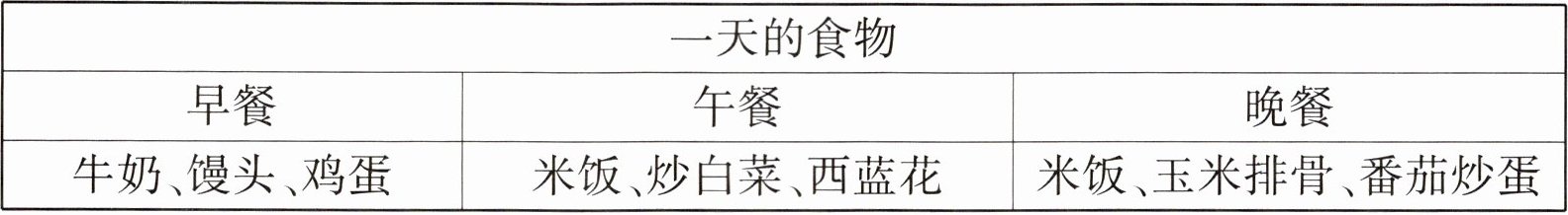 |牛奶、馒头、鸡蛋|米饭、炒白菜、西蓝花|米饭、玉米排骨、番茄炒蛋|