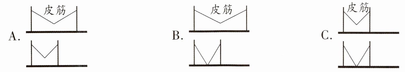 (2)用手拨皮筋琴的皮筋,皮筋振动的幅度越大,发出的声音就越______;振动的幅度越小,发出的声音就越______(均填“弱”或“强”)。