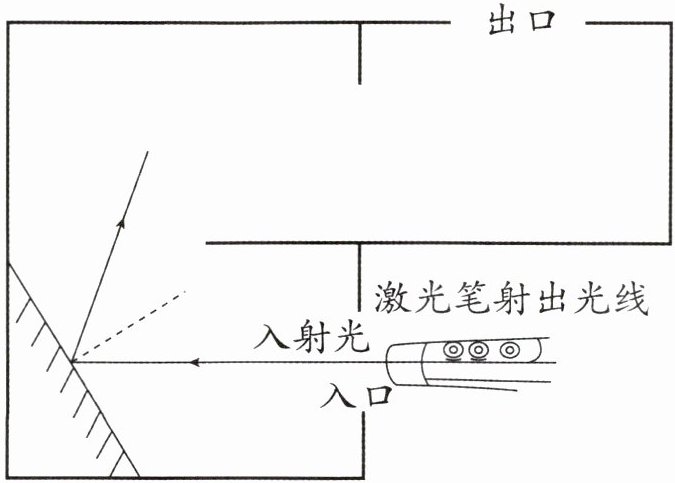 5. 在潜望镜工作原理的基础上,小科同学设计了一个“光”走迷宫的游戏,要求光从“入口”进入,再从“出口”射出。请根据图中的提示,画出镜子的摆放位置和光线路径。(提示:用“\\\\\\\\\\\\\\\\”表示镜子,用“——→”表示光的传播方向)