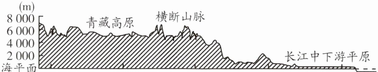 (2)如图是我国北纬32°的地形剖面图。以下对该图的描述,不符合我国地形特征的是( )。