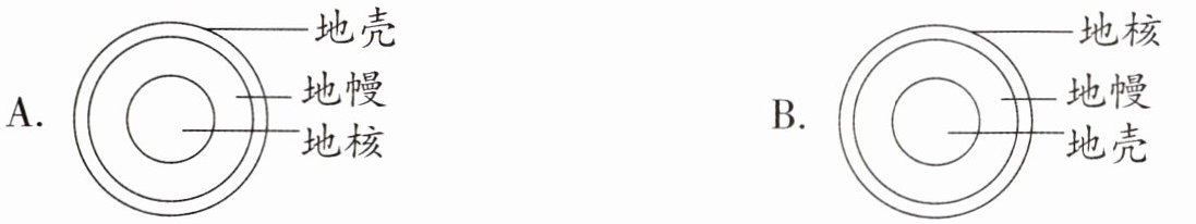 (1)首先,小科同学通过上网搜索资料,了解到地球内部结构。下列地球内部剖面的图片中,正确的是( )。