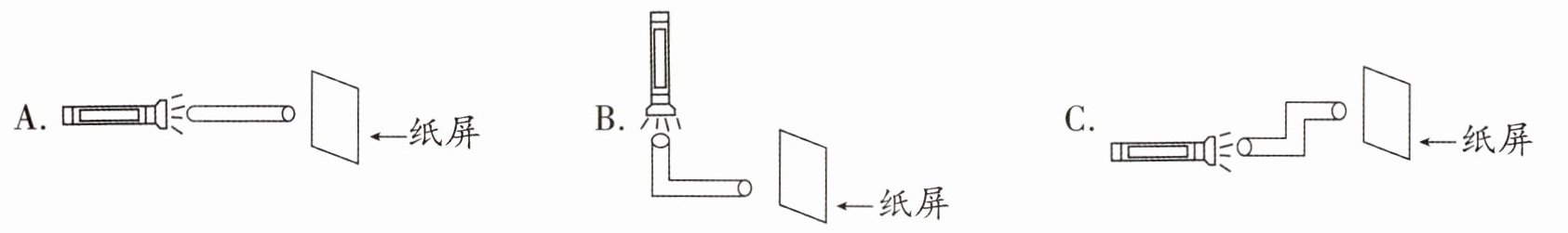 (3)小科准备了不同形状的空管,用手电筒照射。其中在纸屏上能看到光斑的是( )。