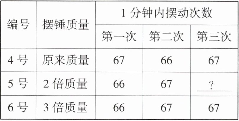 |编号|摆锤质量|1分钟内摆动次数| | |