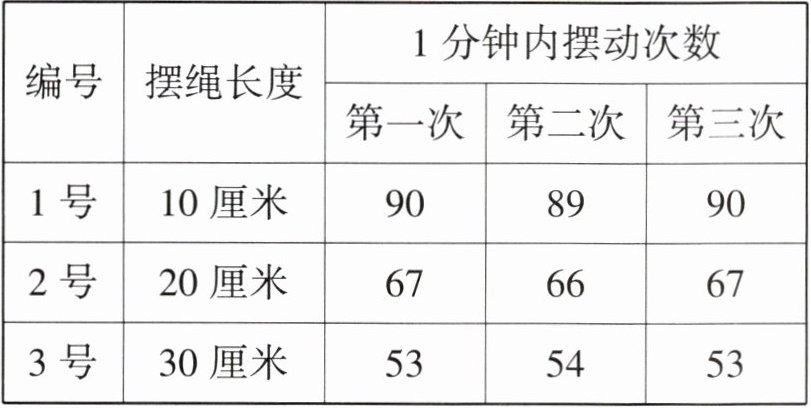 |编号|摆绳长度|1分钟内摆动次数| | |