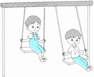 4. 乔乔体重35千克,木木体重40千克。周末,他们去科技馆参观体验,发现一场馆里有两个完全一样的秋千。请根据他们的体验活动回答下列问题: