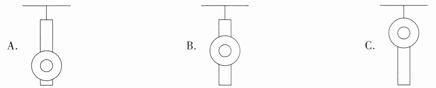 (3)下列是木条上固定一块金属圆片的摆,一分钟摆动次数最多的是( )。