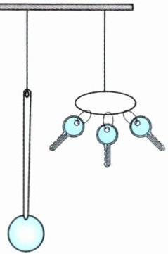 4. 在一次家庭趣味实验中,哥哥在20厘米长的毛线下端系了一把勺子,妹妹在20厘米长的毛线下端系了三把相同的钥匙,两人分别将毛线的另一端固定在葡萄架下后做成了两个摆。