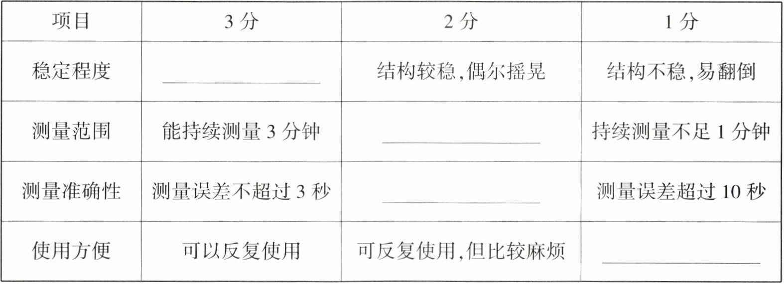 科学小组根据项目需求,制订了评价方案,请补充完整。