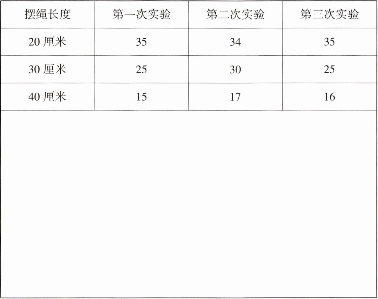 |摆绳长度|第一次实验|第二次实验|第三次实验|
