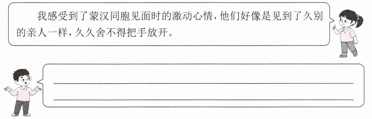 A. 蒙古族同胞和汉族人民的情谊很深,怎么舍得马上就分别?大家面对夕阳,站在无边无际的大草原上,相互倾诉着惜别之情!