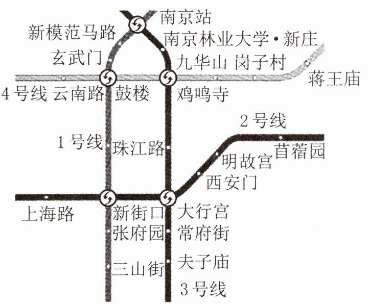 四、新情境 右图是南京地铁线路图的一部分,请阅读后完成练习。