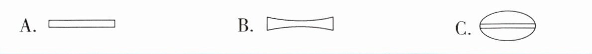 2. 乔乔将下列不同形状的透明玻璃片放在报纸上,透过透明玻璃片,看到报纸上的字迹最大的是( )。