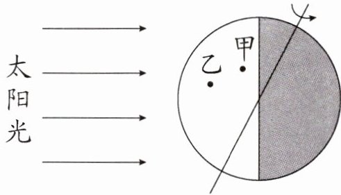 (6)如图所示,城市甲在1小时后进入夜晚,据此推测城市乙在( )小时后会进入夜晚。