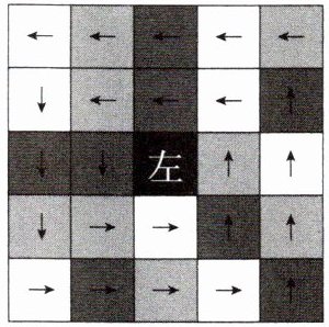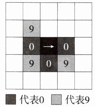 任务1 已知$\frac {1}{11}= 0.\dot {0}\dot {9}$,如图,将循环节中各数字分别设色填充图案,从中心黑色块开始,按照顺时针方向螺旋排列,在空白方格内补全图案并填充对应数字