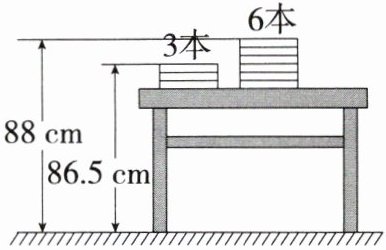 (1)根据题意,得三本课本的高度为 88-86.5=1.5(cm),故每本课本的厚度为$1.5÷3=0.5(cm),$故答案为0.5.