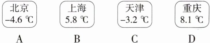 4. 「2024广西中考」下列选项记录了我国四个直辖市某年一月份的平均气温,其中气温最低的是(