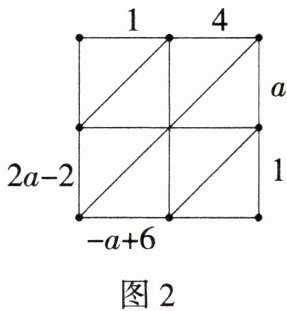 2.新 阅读解题「2025江苏南通如皋期末」“格子乘法”是两个数相乘的一种计算方法,最早在15世纪由意大利数学家帕乔利提出,在明代的《算法统宗》一书中被称为“铺地锦”.如图1,计算47×51,将乘数47计入上行,乘数51计入右行,然后以乘数47的每位数字乘乘数51的每位数字,将结果计入相应的格子中,最后按斜行加起来,得2397.如图2,用“格子乘法”表示两个两位数相乘,则a的值为____.