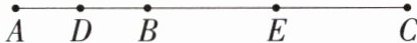 8.如图,B在线段AC上,且$BC= 2AB$,D,E分别是AB,BC的中点,下列结论:①$AB= \frac {1}{3}AC$;②B是AE的中点;③$EC= 2BD$;④$DE= \frac {3}{2}AB$.其中正确的有 (
