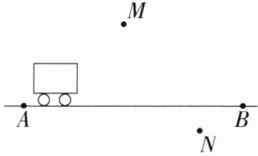 7.新几何直观 噪声对环境的影响与距离有关,距离越小,噪声越大.如图,一辆汽车在笔直的公路上由点A向点B行驶,M,N分别是位于公路AB两侧的两所学校.