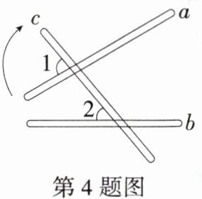 4.如图,将木条a,b与c钉在一起,$∠1= 80^{\circ },∠2$$=50^{\circ }$,要使木条a与b平行,木条a按如图所示的方向旋转的度数至少是____.