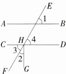 解析 因为GH⊥CD,所以∠CHG=90°.又因为∠2=30°,所以∠3=60°,所以∠4=∠3=60°.因为∠1=60°,所以∠1=∠4.所以AB//CD.