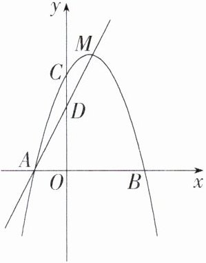 14. 「2023山东枣庄中考」(14分)如图,抛物线$y= -x^{2}+bx+c经过A(-1,0)$,$C(0,3)$两点,并交x轴于另一点B,点M是抛物线的顶点,直线AM与y轴交于点D.